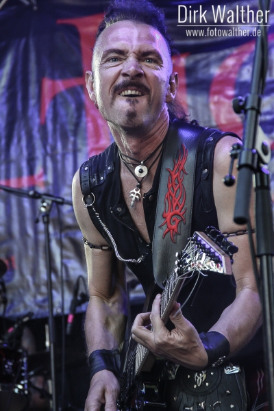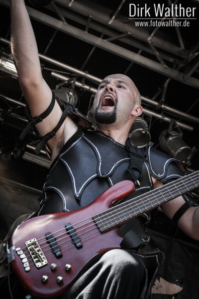 Zum Burgfolk passte der Irish-Folk-Punk von Mr. Irish Bastard natürlich viel eher als zum Devil Side, wo primär dem Metalgott gefrönt wurde. Somit konnte auch hier auf die gute Stimmung gehofft werden. Ich fand sie auch alles andere als schlecht, dem Sänger war der Platz, der in der prallen Sonne lag, jedoch noch nicht voll genug, weshalb er nach den ersten gute-Laune-Songs wie This Wor, I Smell The Blood und Galway Bay deutliche Worte fand, die ich hier im ungefähren Wortlaut wiedergebe: “Ich sehe da eine klaffende Lücke… Wollt ihr Heavy Metal-Teufel lieber im Schatten stehen, ihr fauligen Bierbauchklammernden Arschlöcher?!” Außerdem schob er nach, dass er sich ausziehen würde, sollte der Platz sich nicht weiter füllen. Da viele Besucher trotzdem weiter im Schatten blieben, ergänzte er: “Eure Leidensfähigkeit ist offenbar größer als der Drang zur Sonne!” Diese Ansagen waren mindestens ebenso kurzweilig wie die Stücke, zu denen die Fans vor der Bühne sprangen und klatschten.