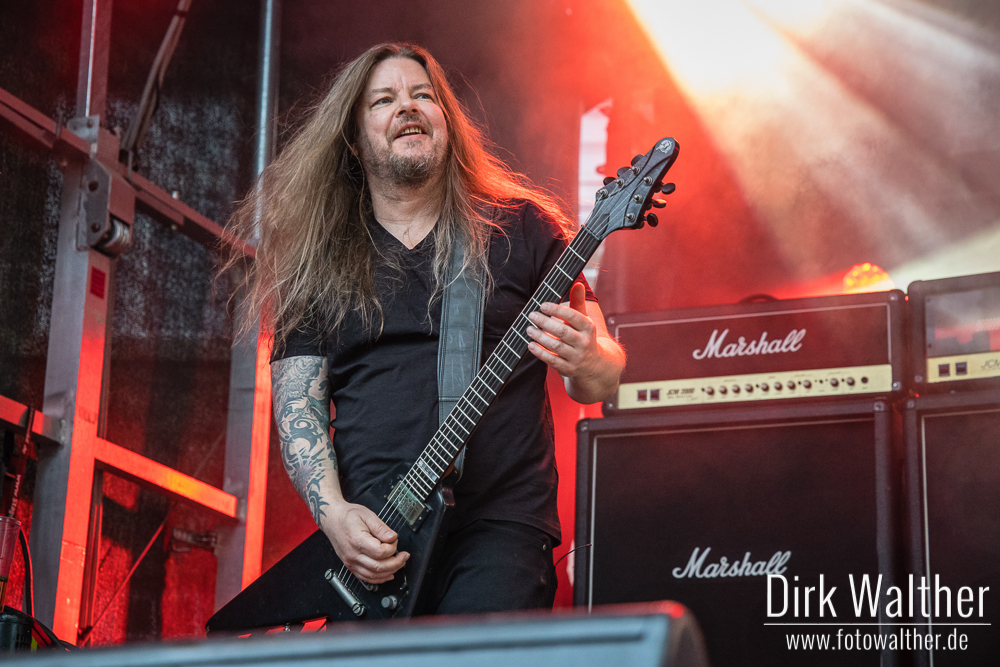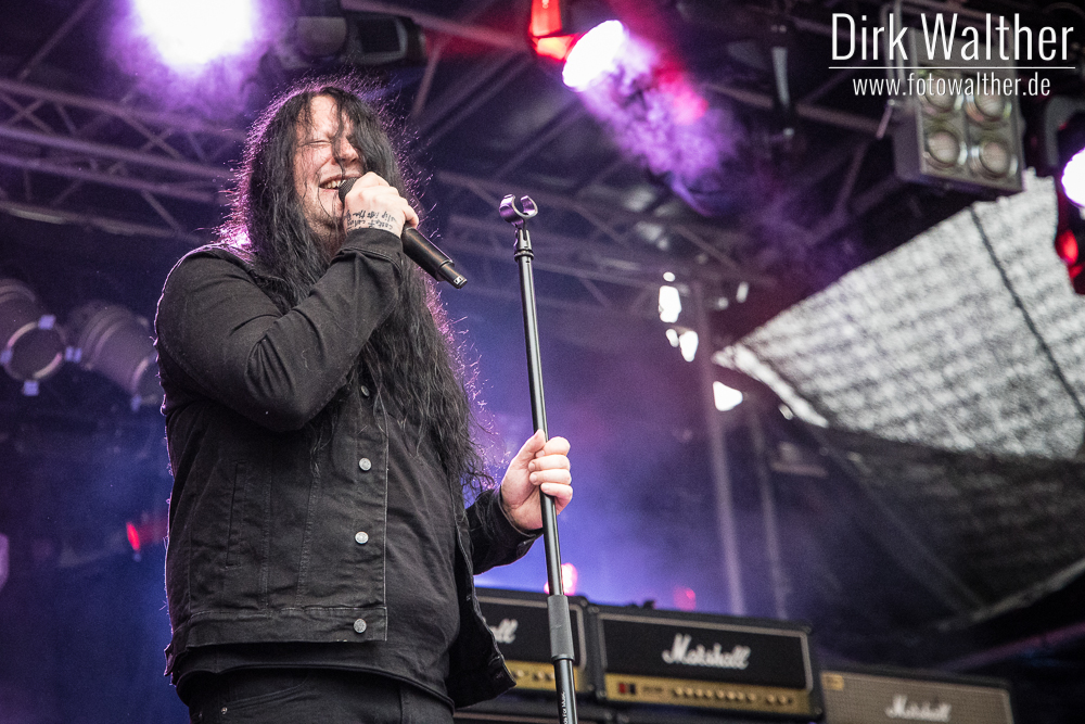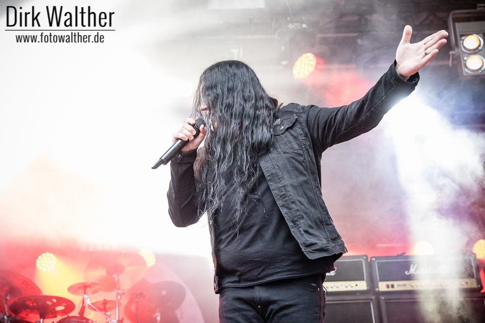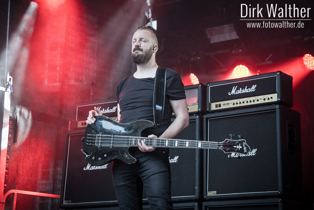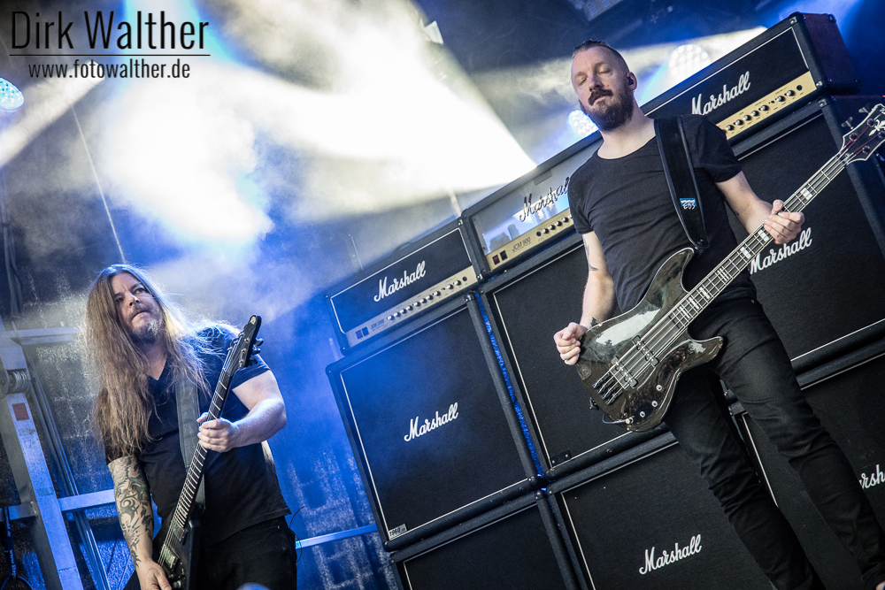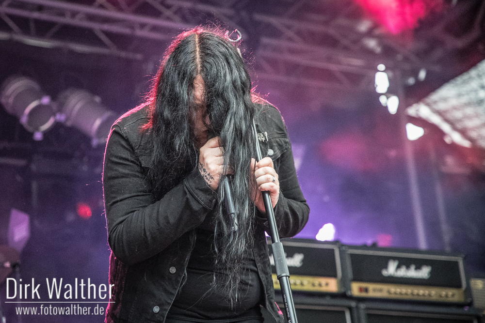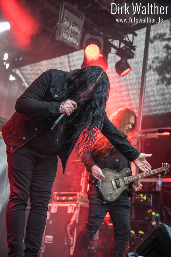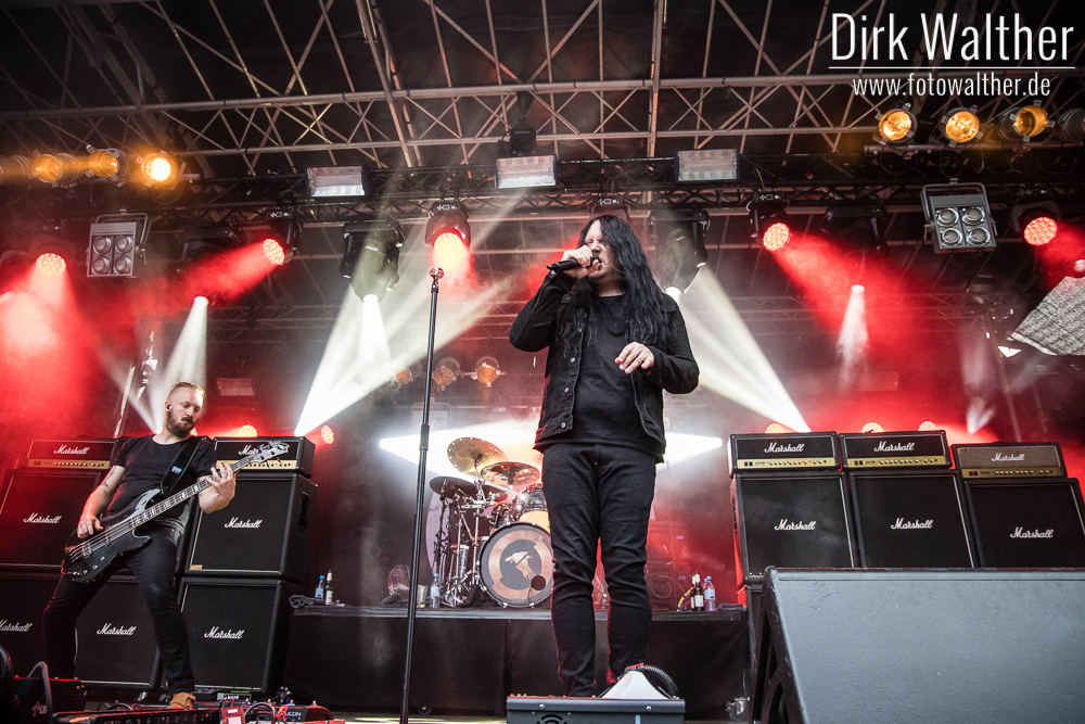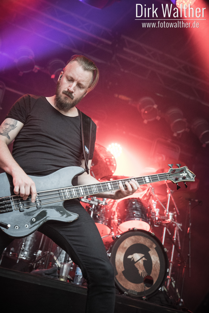 Headliner des zweiten Tages am Samstag war niemand geringeres als Katatonia! Die schwedische Kombo um Jonas „Lord Seth“ Renkse (übrigens das einzige verbliebene Gründungsmitglied) begeistert nun schon seit Anfang der 90er Jahre mit ihrem ganz eigenen düsteren Mix aus Doom Metal mit Black und Death Metal Einflüssen die Szene. Zuletzt hat sich die Gruppe vermehrt dem Dark Metal verschrieben und die Musik ist etwas sanfter geworden, dennoch gibt es auch weiterhin die stilprägenden langsamen treibenden Riffs gepaart mit emotionalen und tiefgründigen Texten. Mit dabei hatten die Schweden ihr aktuelles Album Sky Void of Stars und auch jede Menge Publikumslieblinge aus dem großen Song-Repertoire aus über zwei Jahrzehnten Bandgeschichte.