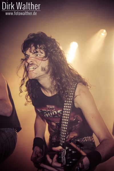 Nachdem das Problem behoben war, hatte Torian die Meute mit Stormbringer allerdings schnell wieder im Griff. Im Anschluss an Lost Command, das die Band nutzte, um ihr aktuelles Album Dawn aus dem Jahr 2012 zu promoten, erkundigte sich Mark, ob das Publikum die Glücksdefinition von Harald Juhnke kenne. Als er in fragende Gesichter blickte, klärte er die Meute auf: „Leicht einen sitzen, keine Termine.“ Herrlich, diese Band! Mit Fall Of The Golden Towers wurde es zum Abschluss etwas langsamer, bevor das Publikum beim Gassenhauer Torian endlich vollends auftaute, fleißig mitsang und die Band mit etlichen Powerfäusten in der Luft verabschiedete.