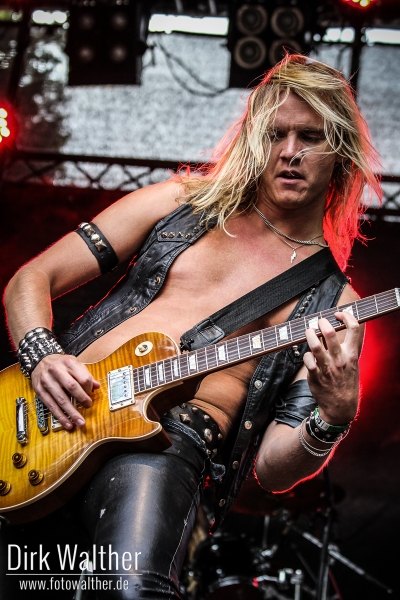 Ebenfalls mit einem neuen aktuellen Album im Gepäck (namentlich Death By Fire) konnten die Jungs um Fronter Olof Wikstrand, bei denen auch das Posing für Fans und Fotografen keineswegs zu kurz kam, mühelos an die gute Stimmung bei vorherigen Band Blitzkrieg anknüpfen.